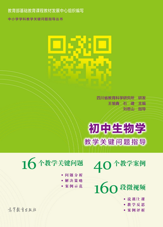 初中生物学教学关键问题指导课程与纸质教材一体化设计,紧密配合。由教育部基础教育课程教材发展中心组织研制。本课程涉及16个初中生物学教学关键问题, 通过40个教学案例为如何解决关键问题提供了参考的范例,每个教学案例配说课、上课、教学反思、案例评析4 个微视频,共计160个微视频。有助于教师提升教学品质,发展教师专业素养,从而促进学生生物科学素养的养成和能力的提升。供初中生物学教师自学或研修使 用。