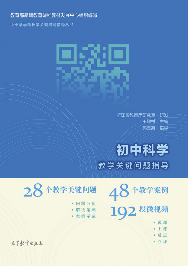 初中科学教学关键问题指导课程与纸质教材一体化设计,紧密配合。由教育部基础教育课程教材发展中心组织研制。本课程涉及28个初中科学教学关键问题,配有48个微课程(含说课、上课、反思、点评等微视频),共计192段微视频。有助于教师提升教学品质,发展教师专业素养,从而促进学生科学核心素养的培养和能力的提升。供初中科学教师自学或研修使用。